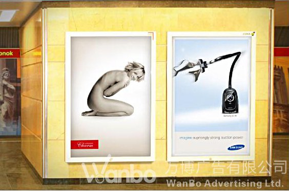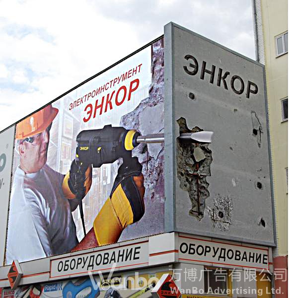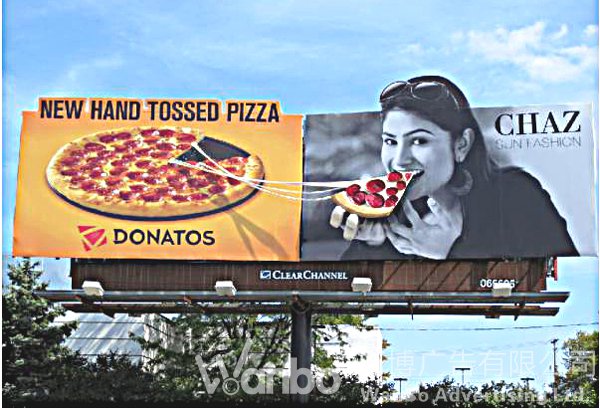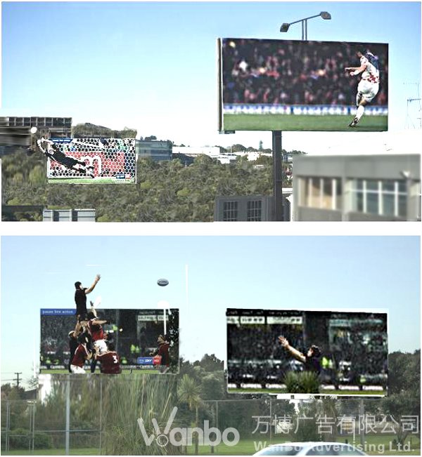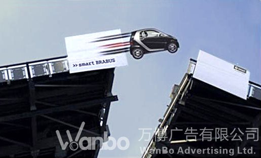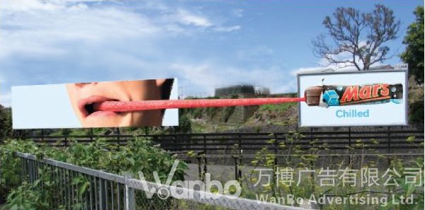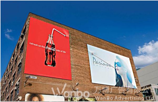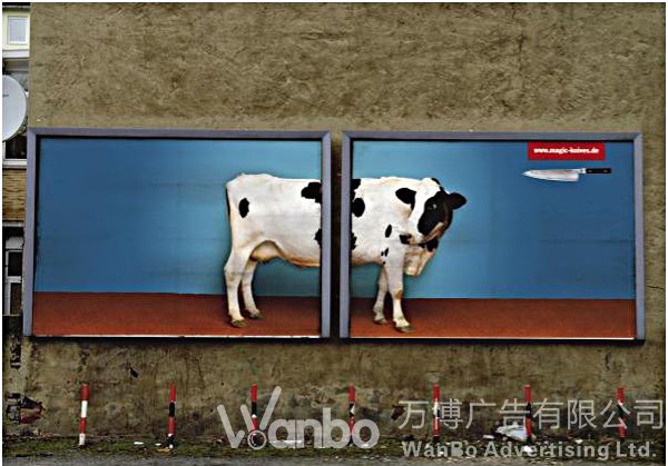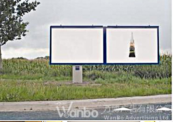 复体广告表现在户外,是多块广告牌的设置。它们之间根据内容需要可以上下、左右,前后任意摆放。