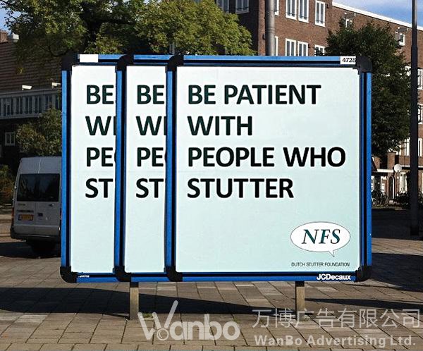 广告牌上的文案是:“对口吃的人要有耐心”